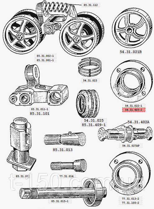 | 54.31.027АР | Ось катка в сборе с гайками (для запасных частей) | |