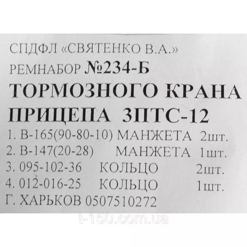 Ремкомплект тормозного крана прицепа 3ПТС-12