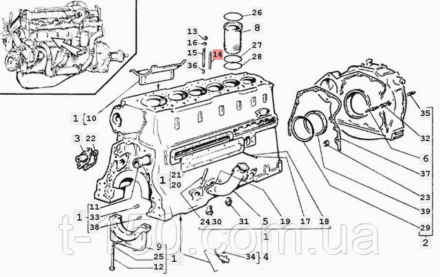 | 12 | 01М-0110-02 | Болт крепления крышки коренного подшипника |